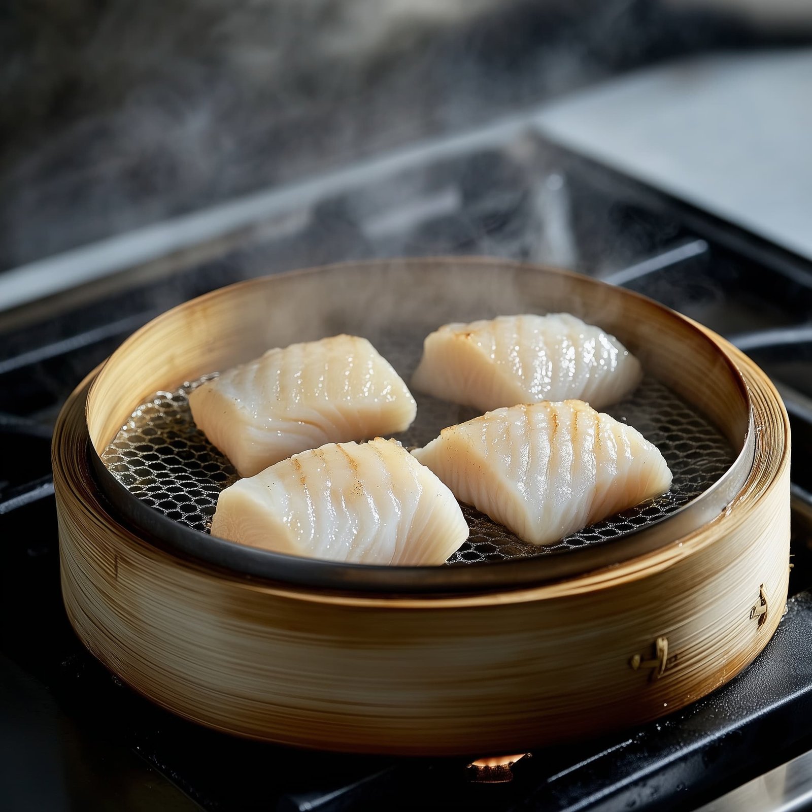 - Coloca los filetes de bacalao en una vaporera o cesta de vapor y cúbrelos. Cocina durante 8-10 minutos, o hasta que el bacalao esté opaco y se desmenuce fácilmente.