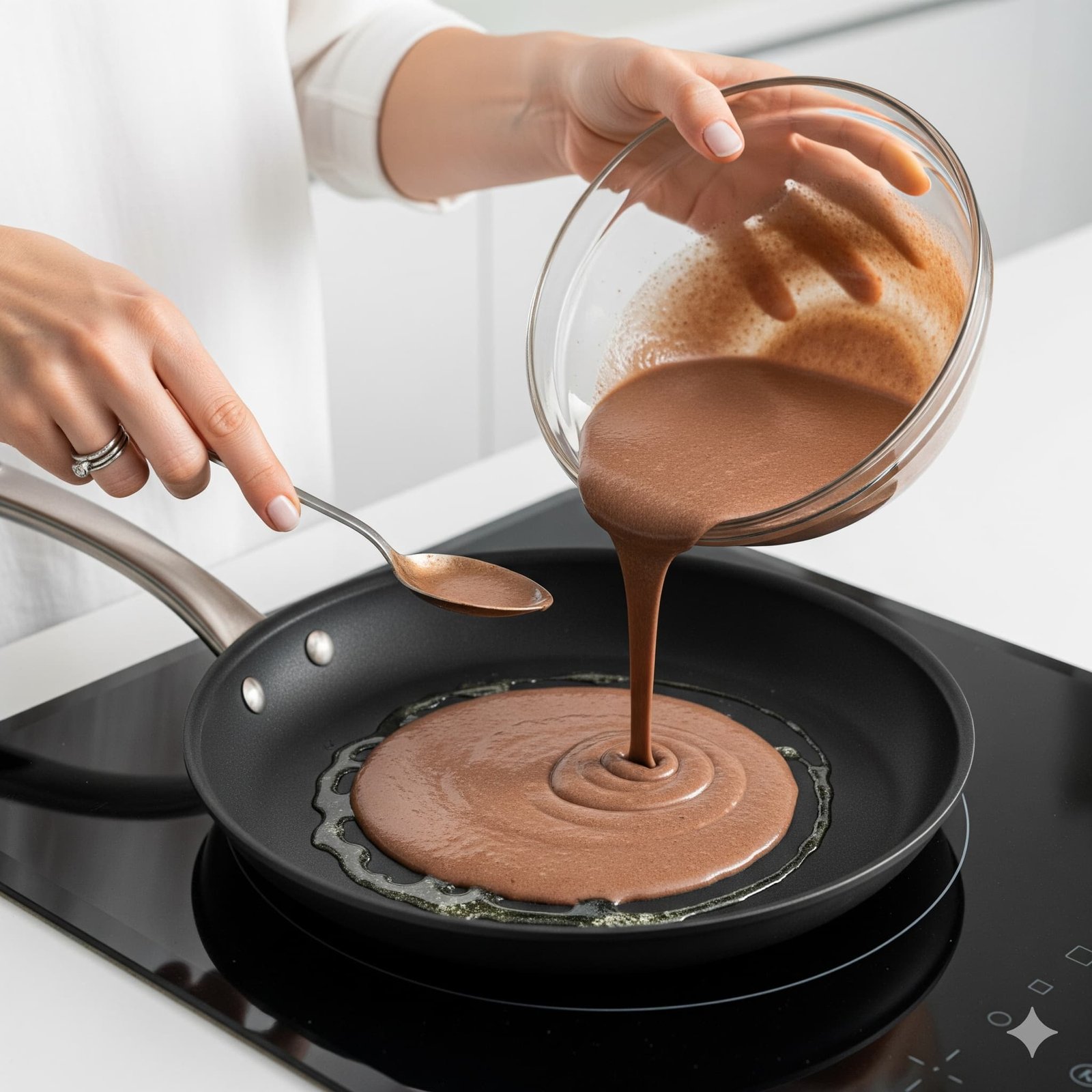Calienta una sartén antiadherente a fuego medio con unas gotas de aceite de coco. Vierte ¼ de taza de la mezcla y mueve la sartén para formar una capa delgada. Cocina 1–2 minutos por lado hasta que esté cocida. Repite con toda la masa.