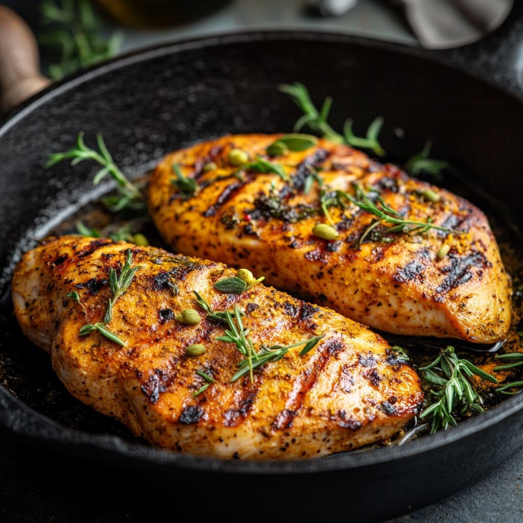 Salpimienta el pollo y agrégale cúrcuma si lo deseas. Cocínalo a la plancha con aceite de oliva, 4-5 minutos por lado hasta que esté dorado y cocido.