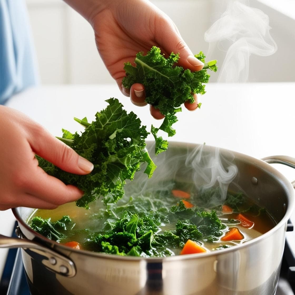 El kale se cocina muy rápido. Añadirlo en los últimos 5-7 minutos de cocción conserva su textura y sus nutrientes, especialmente la vitamina K y el ácido fólico. - Juega con las especias