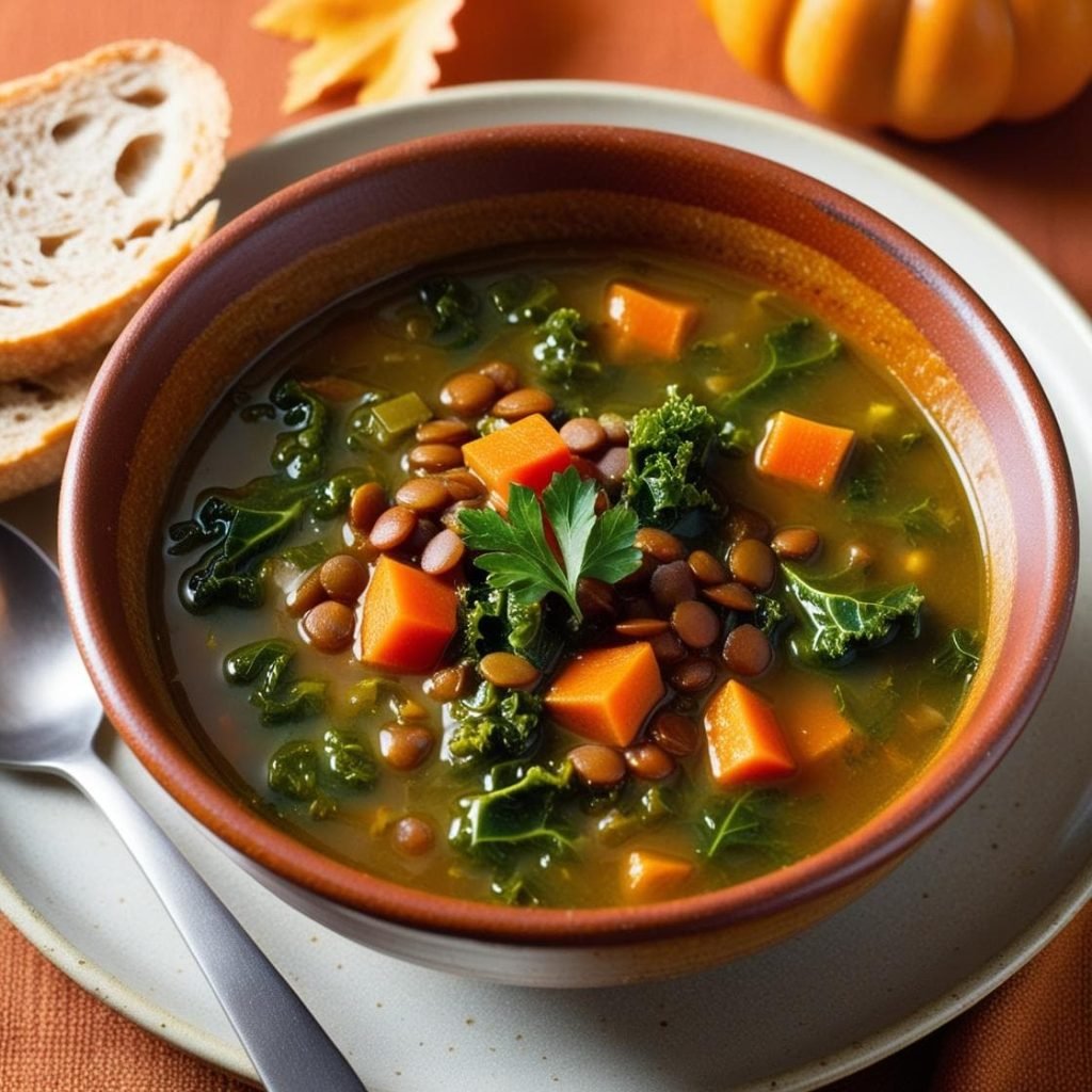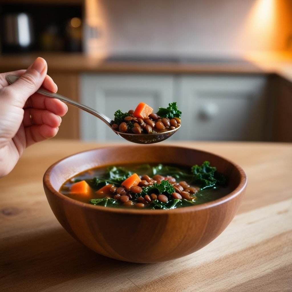 Sopa de Lentejas Rojas y Kale: Alta en fibra, vegana y deliciosa